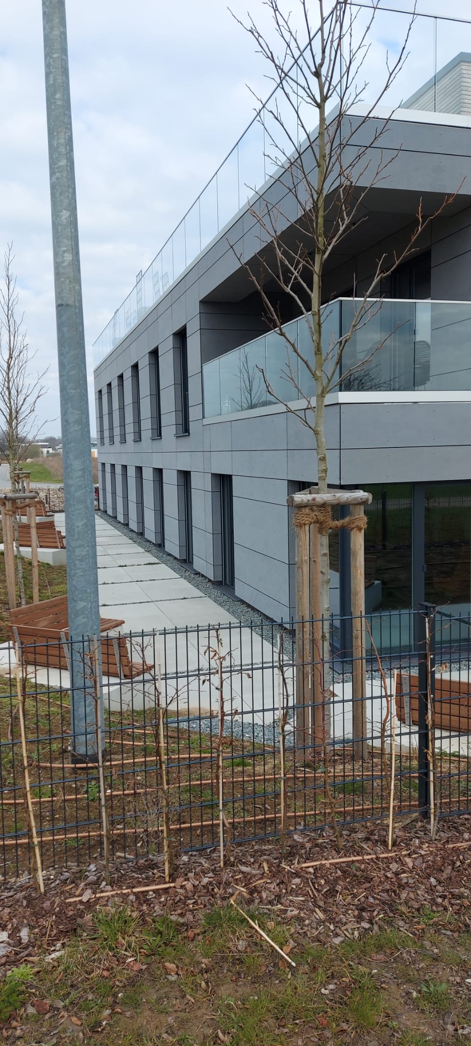 Ein moderner Neubau mit Büro, Sozialtrakt und Lagerhalle.