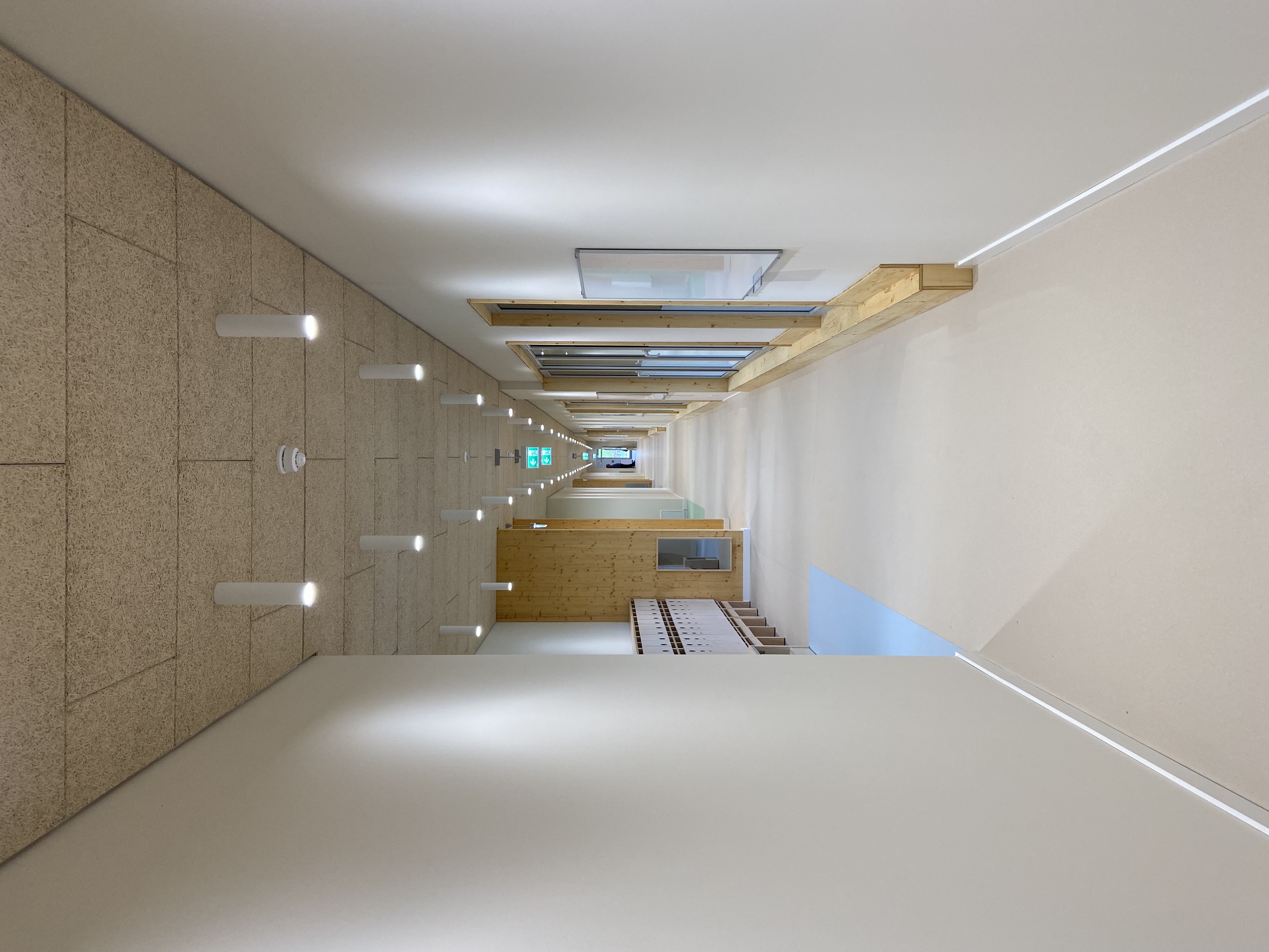 Ein 70m langer Spielflur, eine u.a. für Elterngespräche geeignete Cafeteria im Eingangsbereich, Therapieräume, die auch die Umsetzung der Inklusionspädagogik möglich machen, runden das Konzept ab.