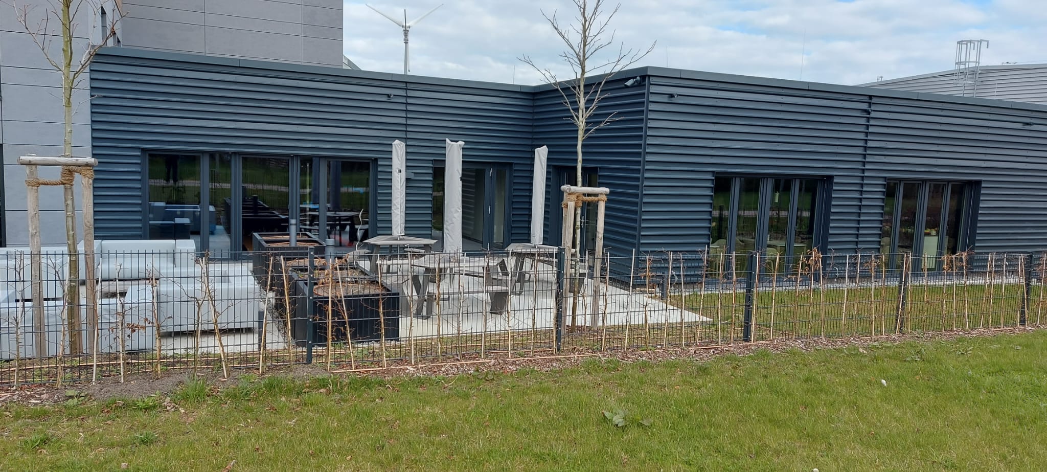 Die Zimmerermeister Karsten Jantzen GmbH hat den Leistungsbereich Ingenieurholzbau mit der Fertigung und Montage der Holzrahmenwände im Holz-Beton-Hybridbau und sämtlicher Fassaden realisiert. Die Herstellung und Montage der eingeschossigen Lager- und Montagehalle erfolgte als Gesamtleistung.