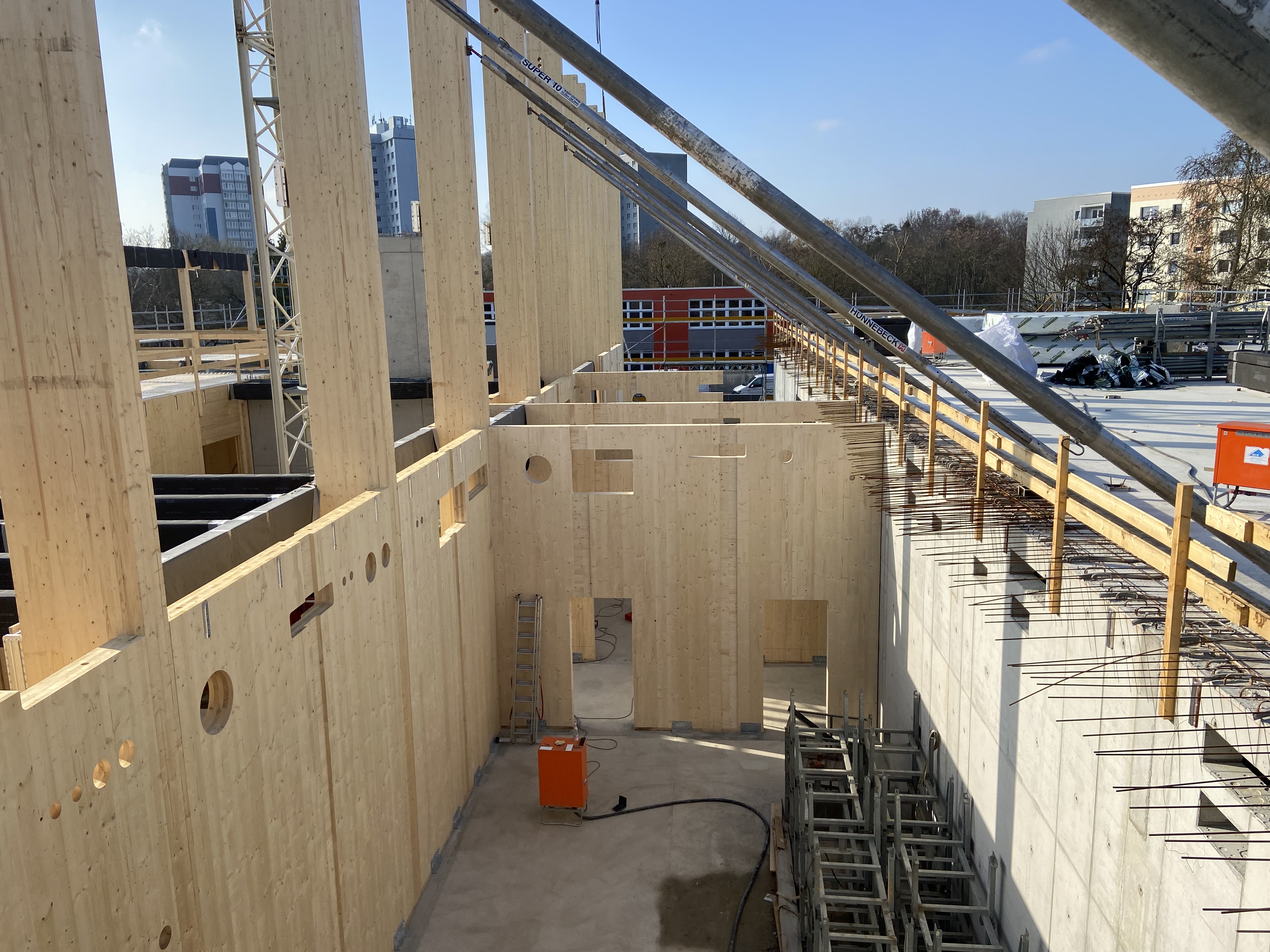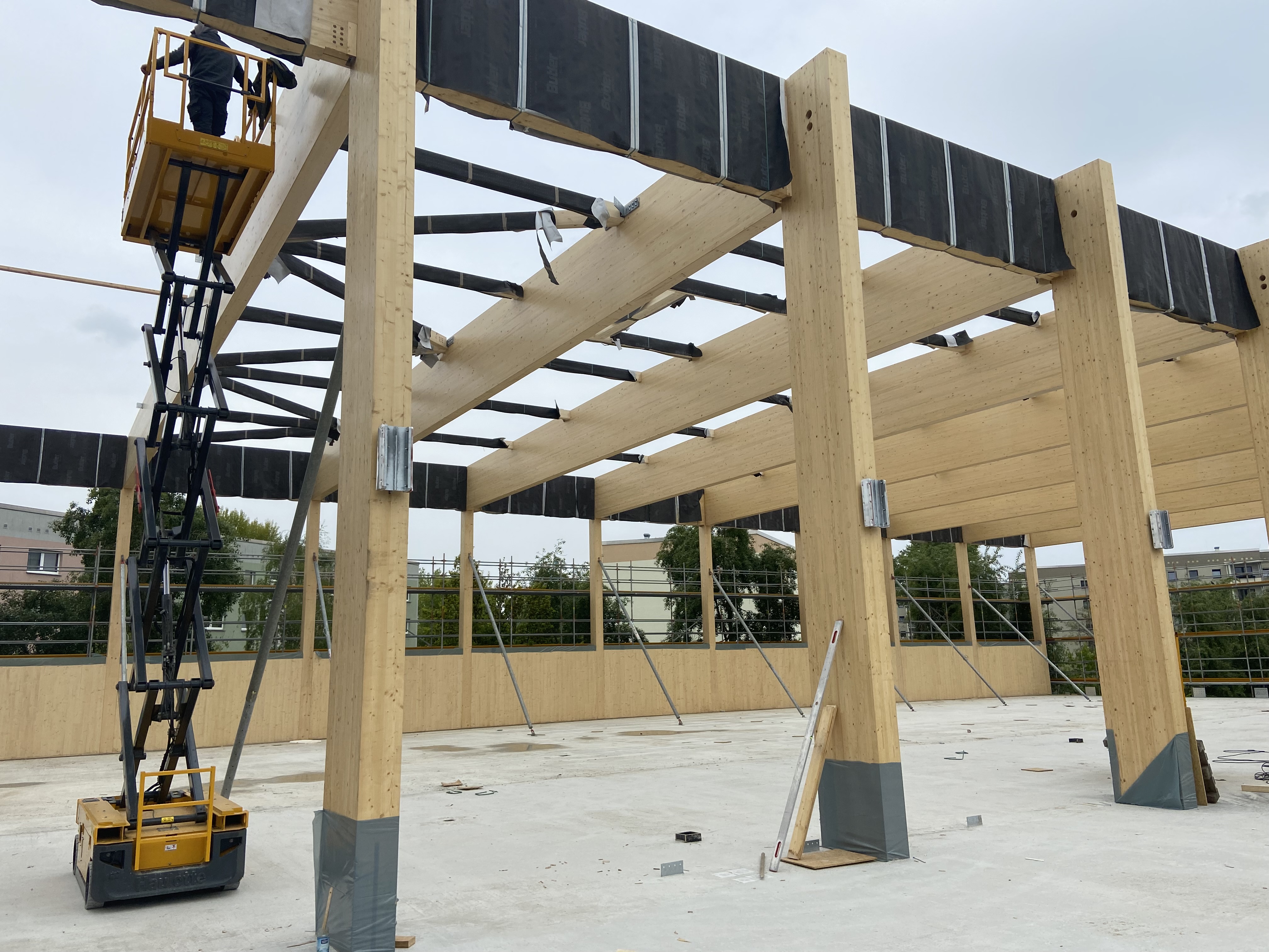 Die Zimmerermeister Karsten Jantzen GmbH wurde mit den Zimmerer- und den Holzbauarbeiten beim Neubau der Zweifachsporthalle in Potsdam beauftragt.